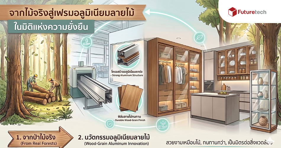 ในช่วงหลายปีที่ผ่านมา วงการออกแบบตกแต่งภายในกำลังเผชิญกับการเปลี่ยนแปลงครั้งสำคัญที่อาจไม่ได้เห็นอย่างชัดเจนในทันที แต่ค่อยๆ เกิดขึ้นผ่านการเลือกใช้วัสดุของนักออกแบบ สถาปนิก และผู้ผลิตเฟอร์นิเจอร์ จากอดีตที่ไม้จริงเคยเป็นพระเอกหลักของงานตกแต่งภายในเกือบทุกประเภท ไม่ว่าจะเป็นตู้เสื้อผ้า หน้าบานเฟอร์นิเจอร์ หรือโครงสร้างตกแต่งต่างๆ ปัจจุบันกลับเริ่มมีวัสดุทดแทนที่เข้ามามีบทบาทมากขึ้น หนึ่งในนั้นคือเฟรมอลูมิเนียมลายไม้ วัสดุที่ผสานความรู้สึกอบอุ่นแบบธรรมชาติเข้ากับเทคโนโลยีอุตสาหกรรมสมัยใหม่ได้อย่างน่าสนใจ และกำลังกลายเป็นทางเลือกใหม่ที่ถูกพูดถึงในบริบทของความยั่งยืน . ความจริงเรื่องอลูมิเนียมและสิ่งแวดล้อม หากพูดถึงคำว่ารักษ์โลกในอุตสาหกรรมวัสดุ หลายคนอาจรู้สึกสับสน เพราะในความเป็นจริงไม่มีวัสดุชนิดใดที่ปราศจากต้นทุนทางสิ่งแวดล้อมโดยสิ้นเชิง โดยเฉพาะอลูมิเนียมซึ่งเป็นวัสดุที่ต้องผ่านกระบวนการผลิตจากแร่บ็อกไซต์ การถลุงแร่ในระดับอุตสาหกรรมจำเป็นต้องใช้พลังงานมหาศาลและปล่อยก๊าซคาร์บอนไดออกไซด์จำนวนมาก นี่คือข้อเท็จจริงที่ผู้เชี่ยวชาญด้านวัสดุและสิ่งแวดล้อมยอมรับร่วมกัน หากมองเพียงจุดเริ่มต้นของการผลิต อลูมิเนียมอาจไม่ได้ดูเป็นวัสดุที่เป็นมิตรต่อโลกเท่าไรนัก แต่ในโลกความจริงของการออกแบบยุคปัจจุบัน แนวคิดเรื่องความยั่งยืนไม่ได้ถูกวัดเพียงขั้นตอนการผลิตเท่านั้น สิ่งที่สำคัญไม่แพ้กันคือวงจรชีวิตของวัสดุหรือ Material Life Cycle ซึ่งครอบคลุมตั้งแต่การผลิต การใช้งาน อายุการใช้งาน ไปจนถึงการกำจัดหรือการนำกลับมาใช้ใหม่ . ศักยภาพการรีไซเคิลที่ไม่มีที่สิ้นสุด เมื่อมองผ่านกรอบคิดวงจรชีวิตของวัสดุ อลูมิเนียมกลับกลายเป็นวัสดุที่มีข้อได้เปรียบอย่างมาก เพราะมันเป็นหนึ่งในวัสดุไม่กี่ชนิดที่สามารถรีไซเคิลได้อย่างไม่สิ้นสุดโดยไม่สูญเสียคุณสมบัติเดิมแม้แต่นิดเดียว ที่น่าสนใจยิ่งกว่านั้นคือ ในกระบวนการทางอุตสาหกรรมพบว่าอลูมิเนียมสามารถนำกลับมาหลอมใหม่ได้โดยใช้พลังงานเพียงประมาณ 5% ของพลังงานที่ใช้ในการผลิตครั้งแรก และคุณภาพของโลหะยังคงเดิม 100% นั่นหมายความว่าเมื่อเฟอร์นิเจอร์ที่ใช้เฟรมอลูมิเนียมหมดอายุการใช้งาน วัสดุเหล่านั้นไม่ได้กลายเป็นขยะถาวรในหลุมฝังกลบ แต่สามารถกลับเข้าสู่วงจรอุตสาหกรรมได้อีกครั้ง แนวคิดนี้สอดคล้องกับระบบเศรษฐกิจหมุนเวียนหรือ Circular Economy ที่กำลังถูกนำมาใช้เป็นแนวทางสำคัญของโลกในศตวรรษที่ 21 . . […]