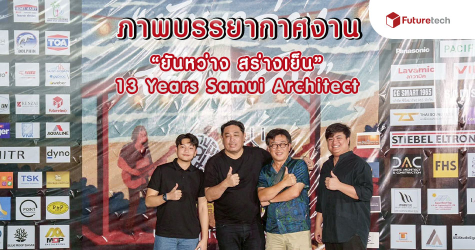 ขอบคุณสถาปนิกสมุยที่จัดงานกิจกรรม Samui Architect ครบรอบ 13 ปี ภายในงาน ” ยันหว่าง สร่างเย็น ” 13 years Samui Architect เมื่อวันเสาร์ที่ 29 พฤศจิกายน 2568 ที่ผ่านมา ที่ทำให้ทุกคนในแวดวงสถาปนิก วิศวกร เจ้าของโครงการ ผู้รับเหมา และดีไซเนอร์ ได้มาพบปะ พูดคุย แลกเปลี่ยนแรงบันดาลใจ และกระชับความสัมพันธ์กันอย่างอบอุ่น ทั้งดนตรี อาหาร ผู้คน และเรื่องเล่าจากหลากหลายโปรเจค ทำให้ค่ำคืนนี้มีความหมายขึ้นมากจริงๆ บริษัทฟิวเจอร์เทคฯ ขอแสดงความยินดีกับ Samui Architect ครบรอบ 13 ปี และหวังว่าจะได้ร่วมงานดีๆ แบบนี้อีกในปีต่อๆ ไป . . .