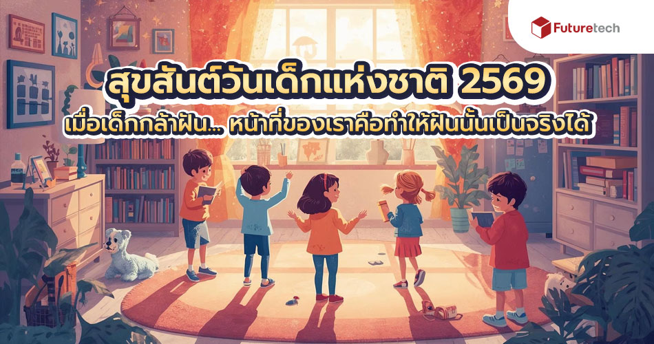 10 มกราคม 2569 (วันเด็กแห่งชาติ) Futuretech เชื่อว่าก้าวแรกของความสาเร็จ เริ่มต้นจากมุมเล็กๆ ในบ้านที่ปลอดภัยและเอื้อต่อการเรียนรู้ เราขอเป็นส่วนหนึ่งในการเนรมิตพื้นที่บ่มเพาะความกล้าคิด จุดประกายความฝันให้เติบโตอย่างงดงามและอิสระเพราะทุกความคิดสร้างสรรค์ของเด็ก ทุกคน คือพลังสาคัญที่จะขับเคลื่อนโลกใบนี้สู่อนาคต