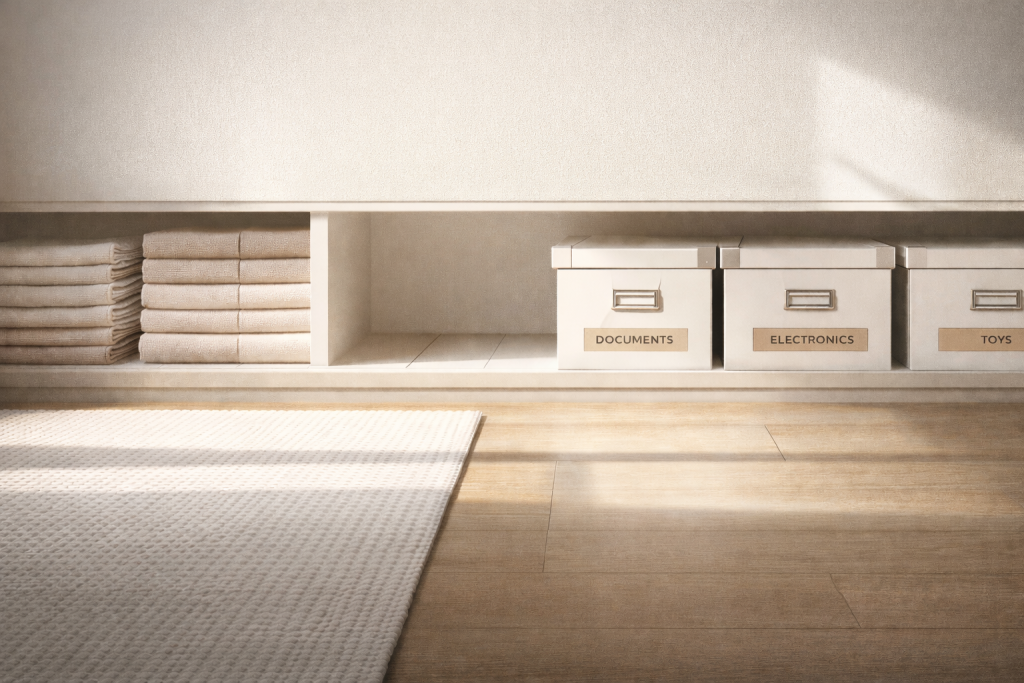 บ้านที่ทุกอย่างอยู่ในที่ของมันเสมอ ผ้าพับเป็นชั้นตรงราวกับเส้นไม้บรรทัด พื้นสะอาดจนแทบไม่มีฝุ่น และกล่องเก็บของที่มีป้ายระบุหมวดหมู่ชัดเจน ทั้งหมดนี้ให้ความรู้สึกสงบ ปลอดภัย และมั่นคง