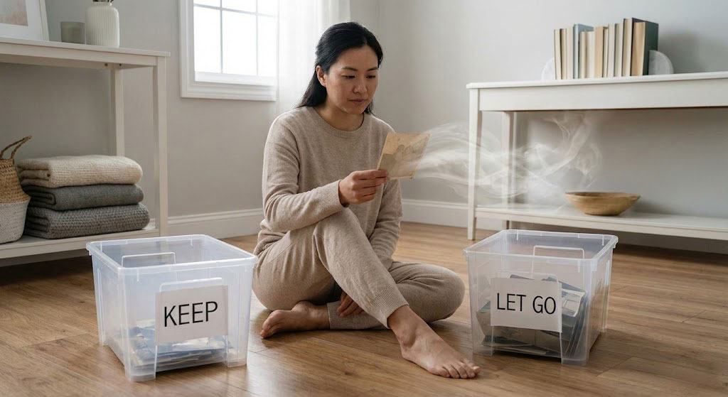 - ใช้การจัดบ้านเป็นบทสนทนากับตัวเอง ถามตัวเองว่าของชิ้นนี้ทำให้ฉันรู้สึกยังไง ฉันเก็บมันไว้เพราะต้องการหรือเพราะกลัวจะเสียอะไรไป คำตอบจะเผยให้เห็นความสัมพันธ์ที่คุณมีกับอดีต ปัจจุบัน และตัวเอง