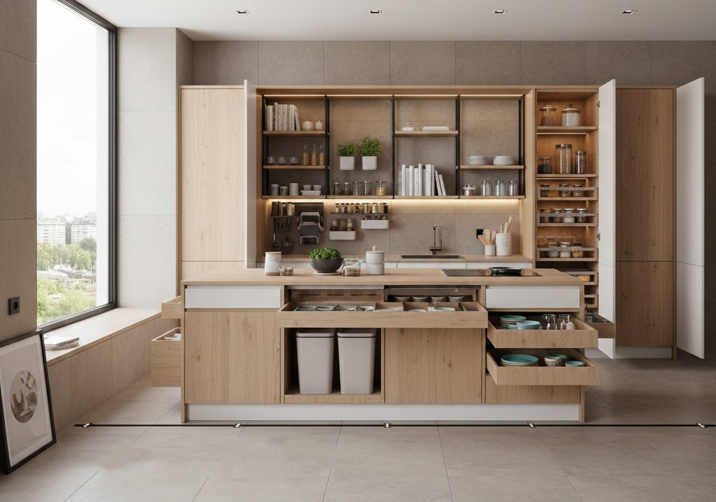 การจัดเก็บที่ฉลาด ครัวที่เปลี่ยนตามชีวิต ไม่บังคับให้เราปรับตัว
