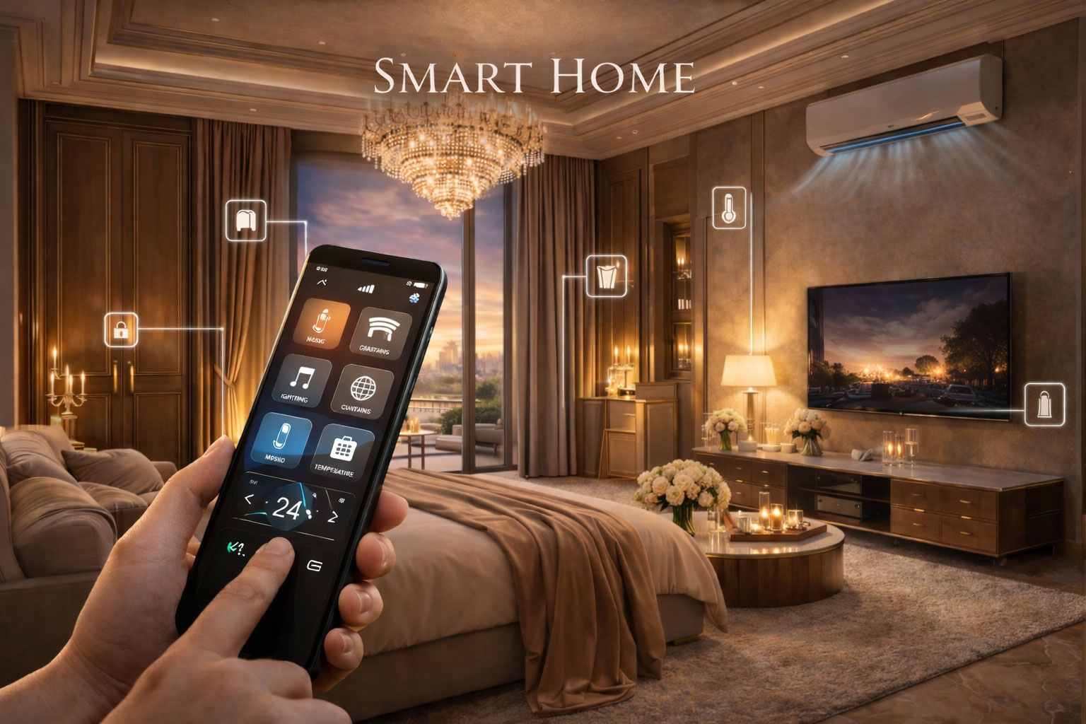 - ระบบบ้านอัจฉริยะ (Smart Home) อีกหนึ่งรายละเอียดที่ทำให้บ้านดูทันสมัยและสะดวกสบายคือระบบ Smart Home ไม่ว่าจะเป็นการควบคุมไฟแบบ Sensor ระบบเปิด-ปิดหน้าบานที่สั่งการด้วยรีโมท ประตูกระจกบานเลื่อนระบบไฟฟ้า หรือชุดชั้นเก็บของในครัวปรับขึ้นลงสั่งการด้วยเสียง