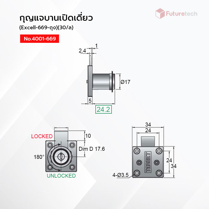กุญแจล็อคเฟอร์นิเจอร์ No.4001-669