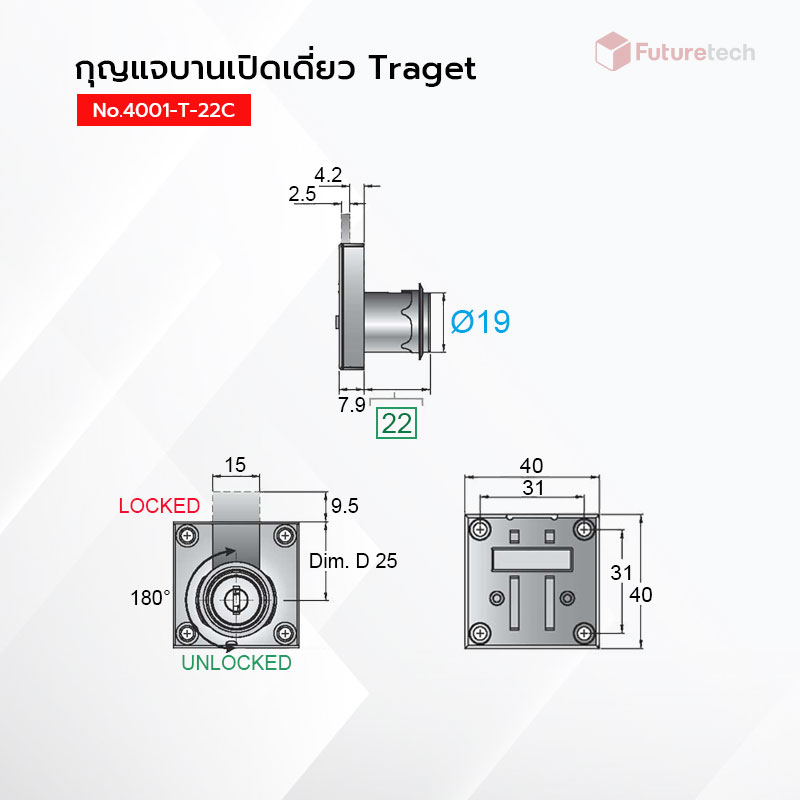กุญแจล็อคเฟอร์นิเจอร์ No.4001-T-22C