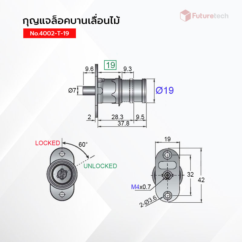กุญแจล็อคเฟอร์นิเจอร์ No. 4002-T-19