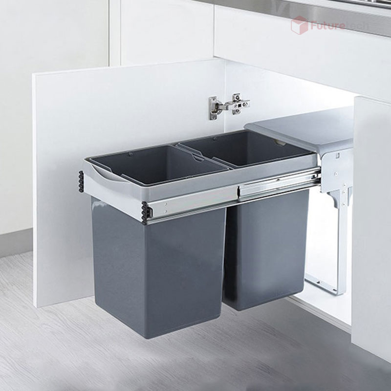 ถังขยะในครัว ถังคู่ ติดหน้าบาน สีเทา