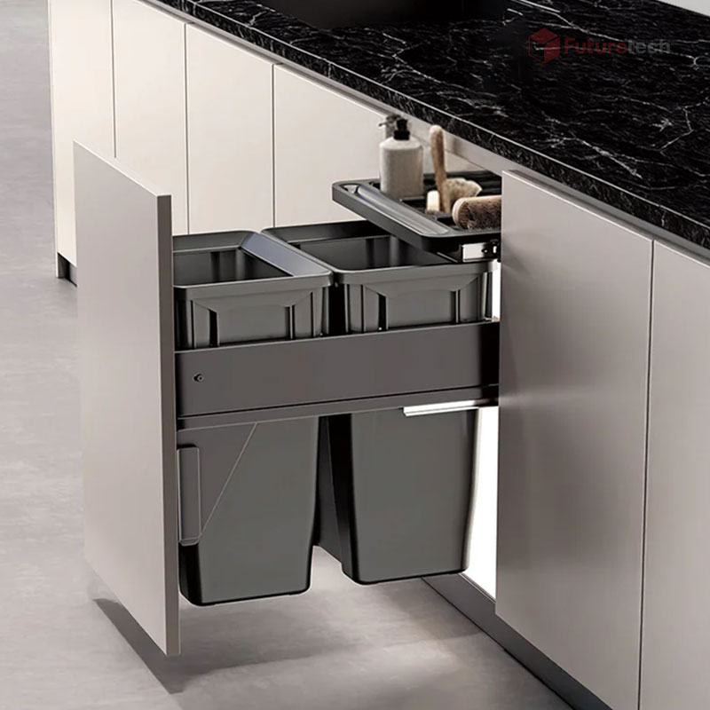 ถังขยะในครัว ติดหน้าบานดึง (ถังคู่)