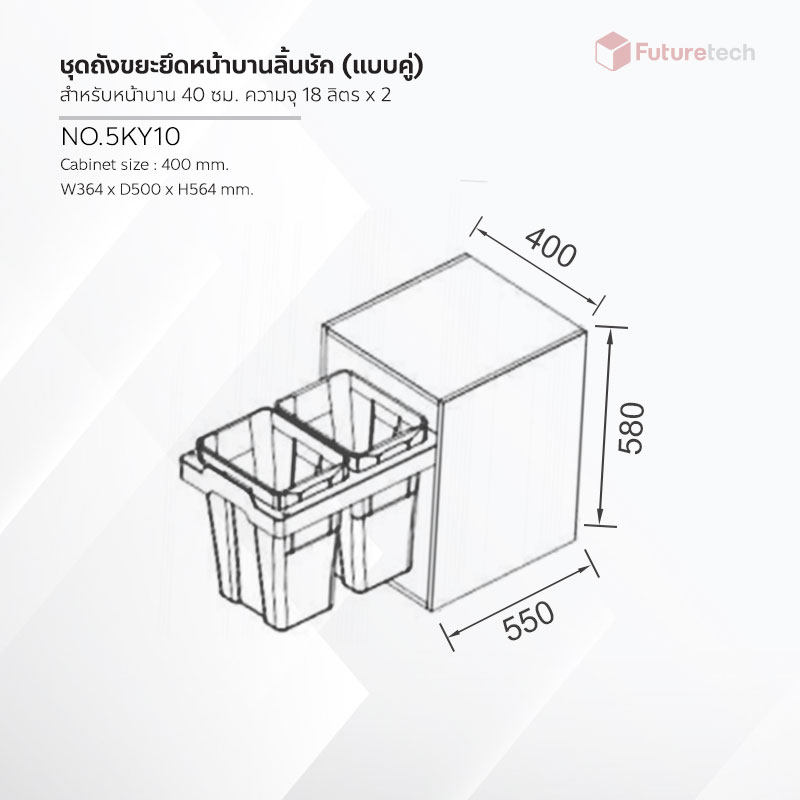 - ขนาดตู้ : W400 x D550 x H580 mm.