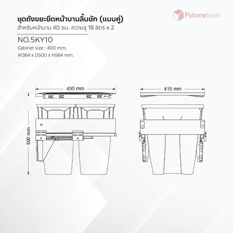 - ขนาด : W364 x D500 x H564 mm.