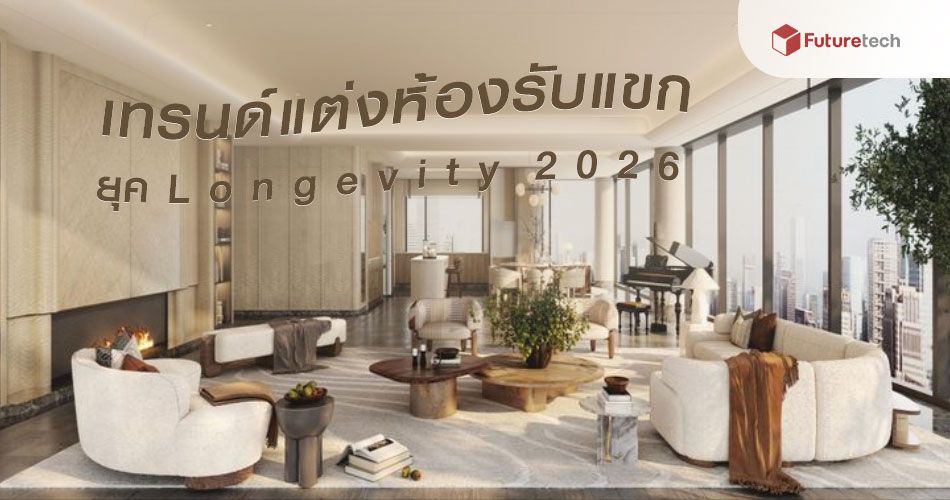 “เมื่อสีขาวไม่ใช่ความว่างเปล่า แต่คือพื้นที่ให้ชีวิตได้หายใจ” ในโลกที่เต็มไปด้วยความเร่งรีบ ข้อมูลที่หลั่งไหลไม่หยุด และความคาดหวังที่ถาโถมเข้ามาจากทุกทิศทาง การเลือก “สี” สำหรับบ้านในปี 2026 จึงไม่ใช่เรื่องของความสวยงามเพียงอย่างเดียว แต่เป็นเรื่องของสภาวะทางอารมณ์และคุณภาพของการใช้ชีวิต Pantone Color Institute ประกาศให้สี Cloud Dancer (PANTONE 11-4201) เป็นเทรนด์สีแห่งปี 2026 สีขาวนวลละมุนโปร่งเบาราวกลุ่มเมฆที่ลอยอยู่ในอากาศ นี่ไม่ใช่การเลือกสีที่เรียบง่ายแบบผิวเผิน หากแต่เป็นการสะท้อน “ความรู้สึกร่วมของโลก” ที่กำลังโหยหาความสงบ ความชัดเจน และพื้นที่ว่างทางใจ บทความนี้ฟิวเจอร์เทคฯ จะพาไปทำความเข้าใจว่าทำไม Cloud Dancer จึงกลายเป็นสีสำคัญของปี 2026 และสีขาวที่ดูเหมือนเรียบง่ายนี้สามารถเปลี่ยนบ้านให้กลายเป็นพื้นที่เยียวยาได้อย่างไร . Cloud Dancer คืออะไร? Cloud Dancer คือสีขาวนวลแบบนุ่มละมุนที่สื่อถึงความสงบ ความชัดเจน และการเริ่มต้นใหม่ในโลกที่เร่งรีบและเต็มไปด้วยสิ่งเร้าในทุกวัน นี่ถือเป็นครั้งแรกที่ Pantone เลือก “เฉดสีขาว” เป็นสีแห่งปี ซึ่งดูเหมือนจะเป็นสัญญาณของแนวโน้มการออกแบบที่เน้นความสะอาดตา ความเรียบง่าย และพื้นที่ให้จินตนาการได้กว้างขึ้น สีขาวที่มีน้ำหนักของความรู้สึก เมื่อพูดถึงสีขาว หลายคนอาจนึกถึงความโล่ง […]